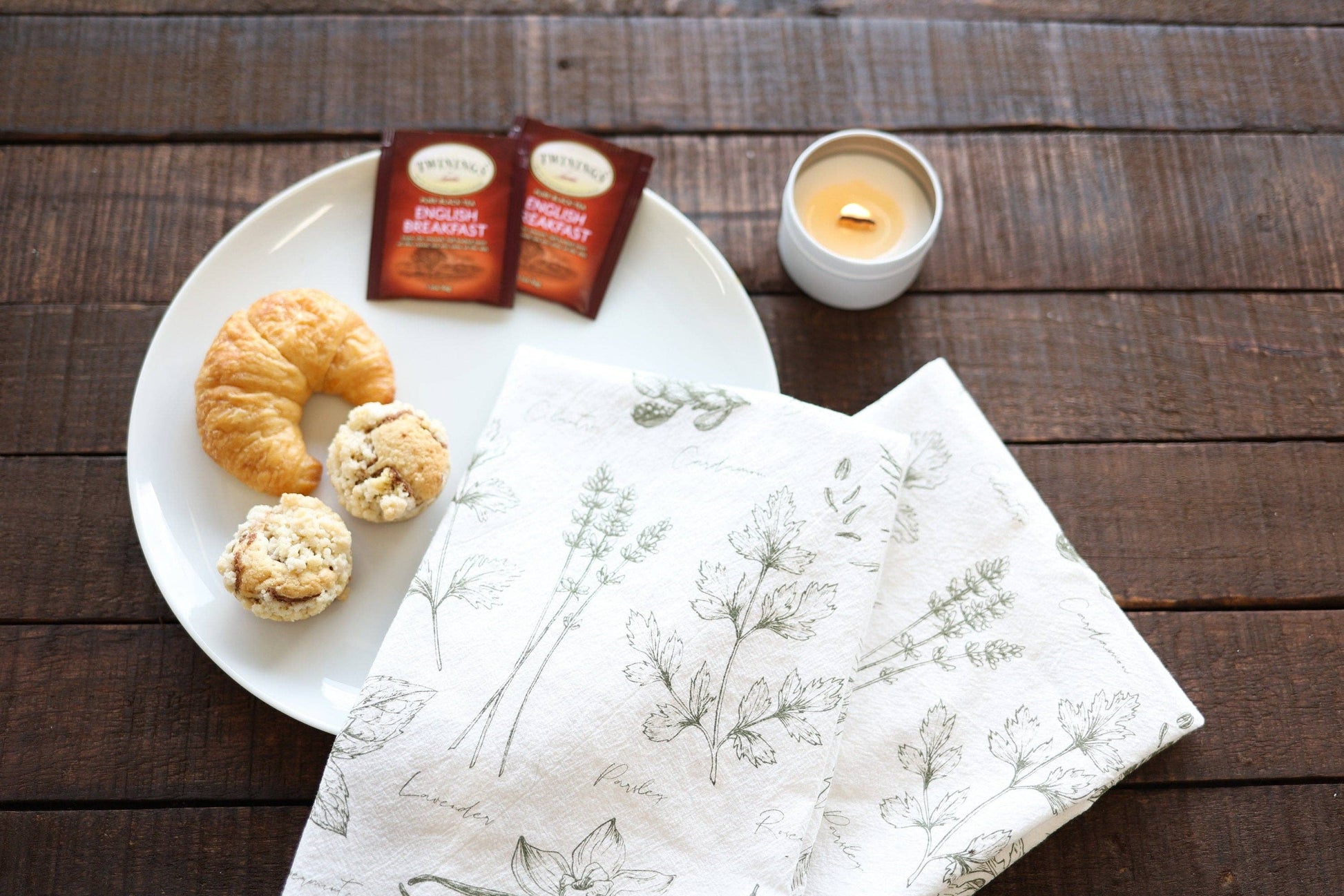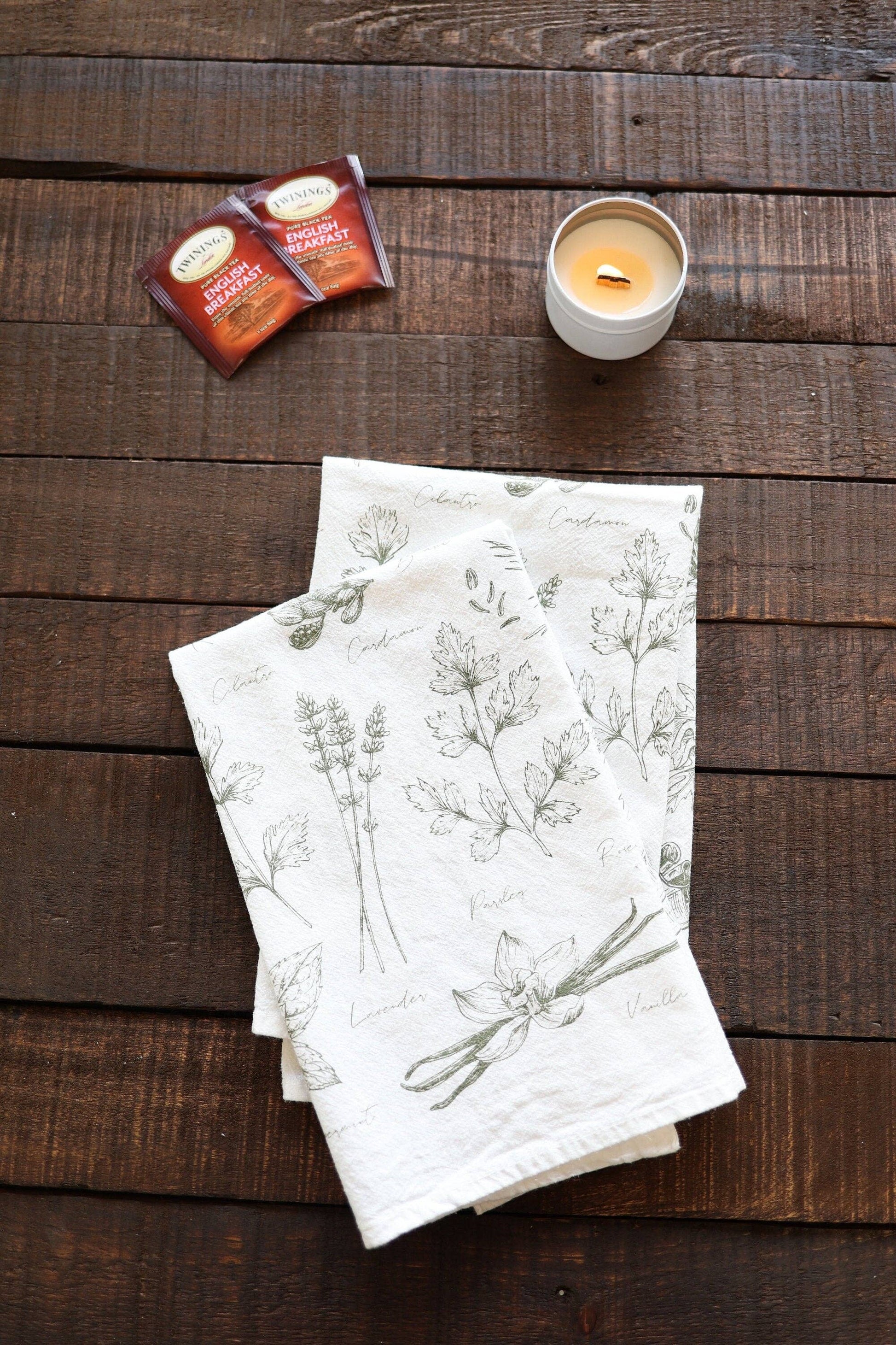 These 100% cotton tea towels add that perfect soft touch to your kitchen, while still working hard! These are the perfect size to fold and display in a table setting or hanging over your oven. They are medium weight and lint-free so it works as a delicate napkin or as an absorbent clean-up cloth. (YES, they are *absorbent!*) Cloth measures 18 inches long and 22 inches wide, with slight variations in size. Printed with a soft, watercolor ink at a local screen printer in Leoma, TN.