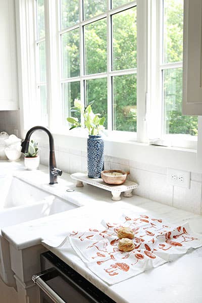 These 100% cotton tea towels add that perfect soft touch to your kitchen, while still working hard! These are the perfect size to fold and display in a table setting or hanging over your oven. They are medium weight and lint-free so it works as a delicate napkin or as an absorbent clean-up cloth. (YES, they are *absorbent!*) Cloth measures 18 inches long and 22 inches wide, with slight variations in size. Printed with a soft, watercolor ink at a local screen printer in Leoma, TN.